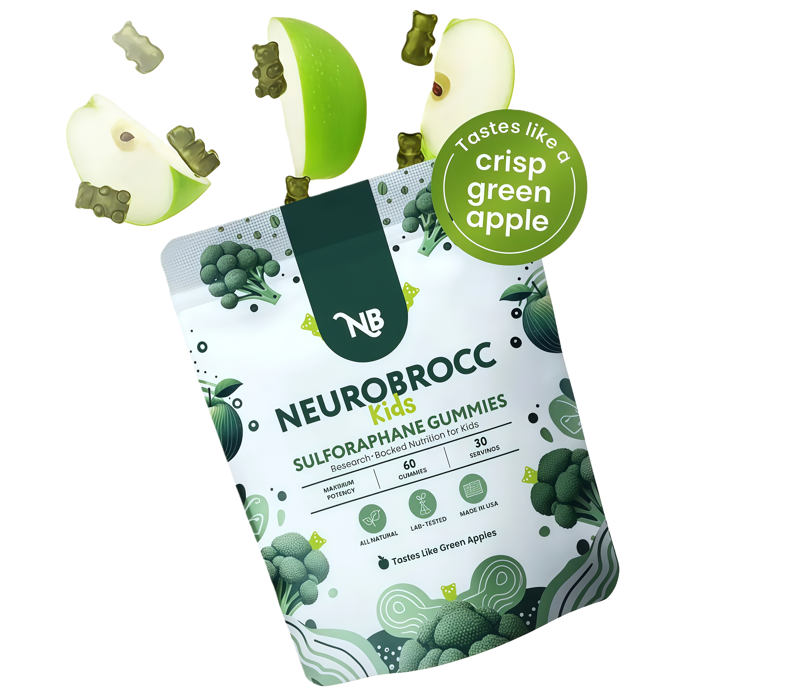 When your child takes NeuroBrocc, sulforaphane activates their body’s natural defense system, shielding the brain from oxidative stress or "brain rust" caused by processed foods, screens, and environmental toxins.